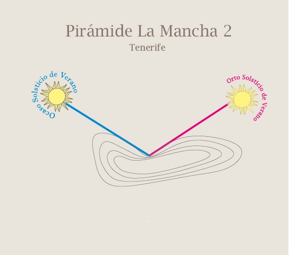 La estructura escalonada piramidal situada en la zona de La Mancha del municipio de Icod de los Vinos que hemos denominado “La Mancha 2”,  se caracteriza con una cara Norte de forma peculiar a modo de abanico que se abre desde un punto central hacia dos direcciones  orientadas; hacia el Noreste coincidente con salida del sol el solsticio de verano y hacia el Noroeste con la puesta de sol del solsticio de verano.